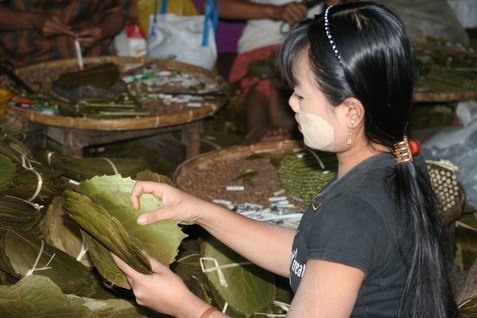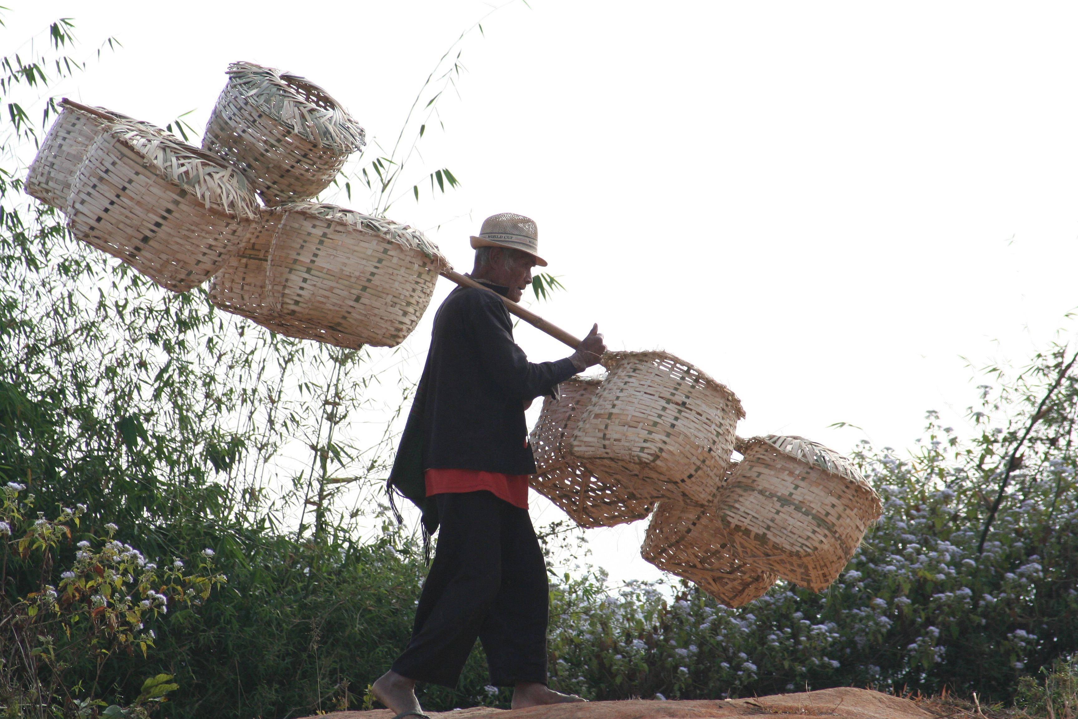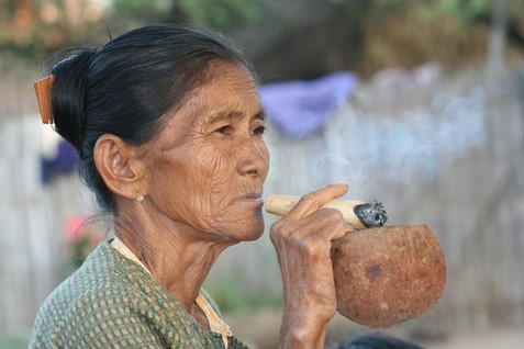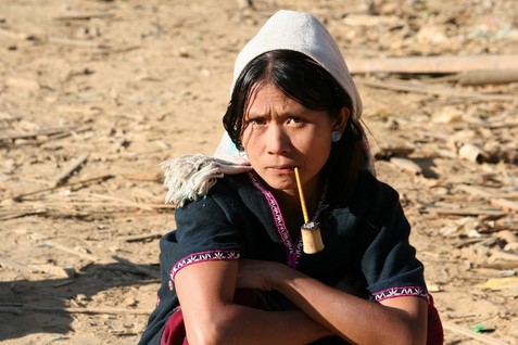 femme PALAUNG, cerceaux en rotin,