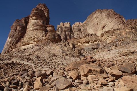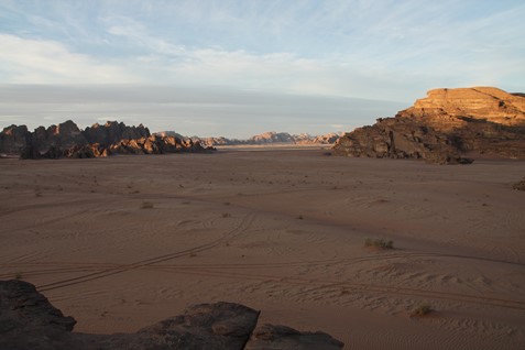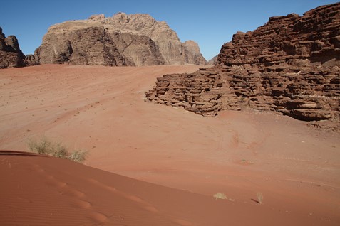 WADI RUM, désert de sable et de rochers très découpés - petit canyon