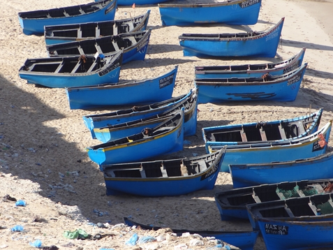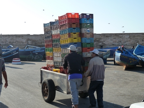 Matinée tranquille au camping, puis taxi jusqu’à Essaouira. Ville très agréable pleine de sérénité où nous passerons une bonne journée. Sur le port nous achèterons des crevettes, et des fraises sur le chemin du retour. Je n’ai pas encore noté que le gasoil est à 0.66 cts d’euro ! Il paraît que plus au sud il est encore moins cher !