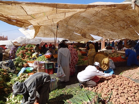 du samedi à Guelmin : chameaux, moutons, chèvres et tomates, haricots,