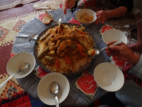 moindre ombre. Mustafa nous prépare un tajine. Il a tout apporté sur le