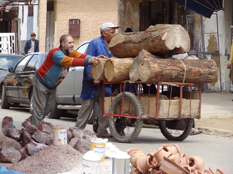 mobylettes, des charrettes, des commerçants qui veulent nous vendre des