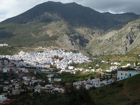 les vallées et les sommets poudrés de neige. Arrivée à Chefchaouen où