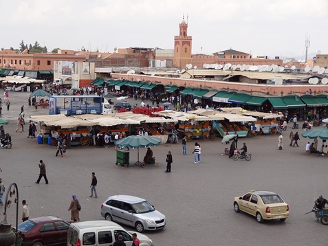 balader dans Marrakech. Traversée de la place Jemaa el Fna puis balades