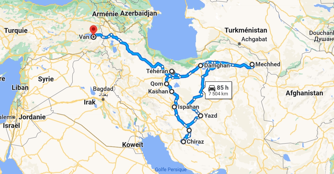 sortie d’Iran et l’entrée en Turquie.