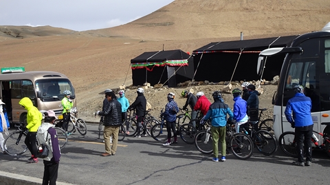 au parking et prenons un bus jusqu'au camp de base à 5 200 m.