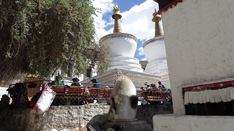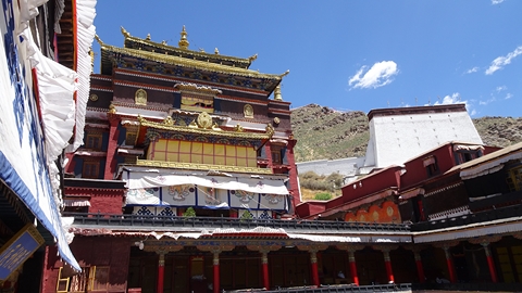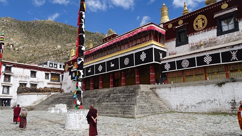 Tashilungpo. Il est loin de l'hôtel et de son parking et nous profitons