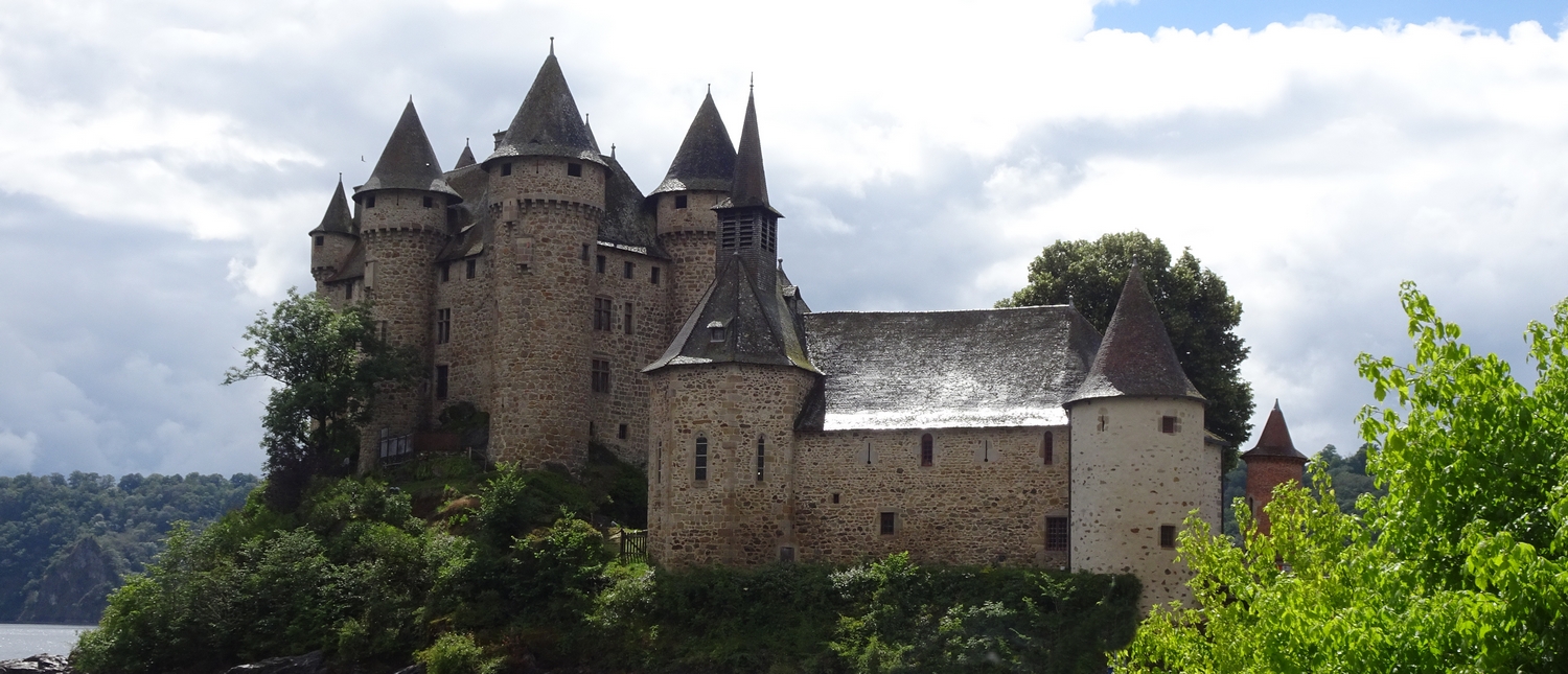 Un vrai château médiéval sur un îlot de la retenue d'eau du barrage de Bort les Orgues.