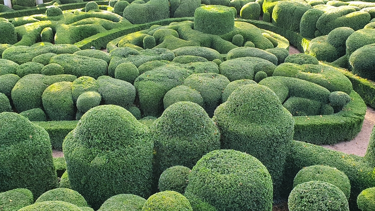 L'art topiaire est à son plus haut niveau pour les massifs de buis. Un