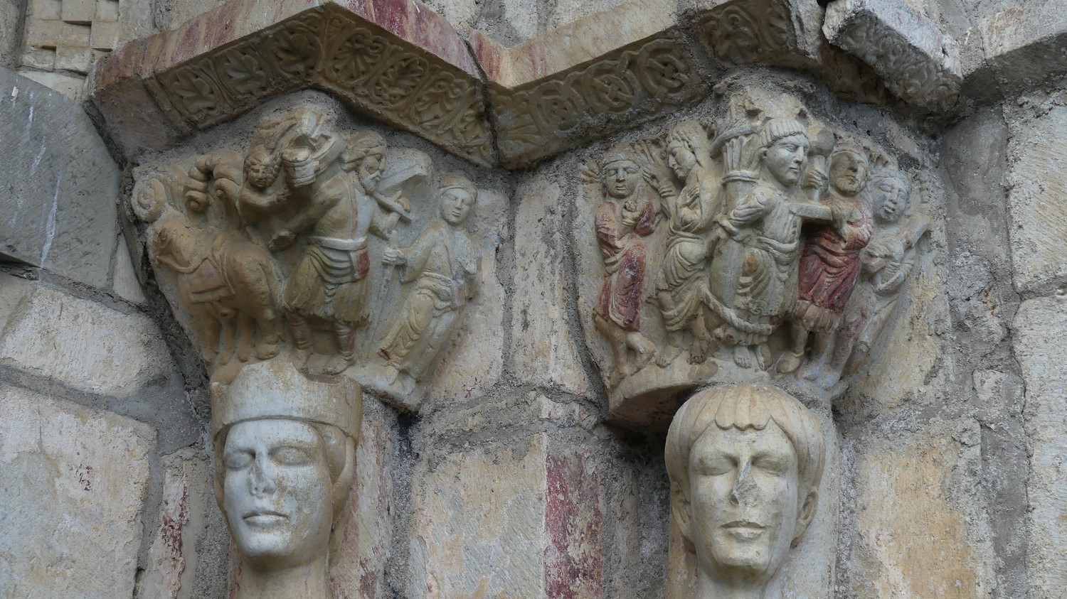 des colonnes et chapiteaux de l'époque romaine qui ont été réutilisés.