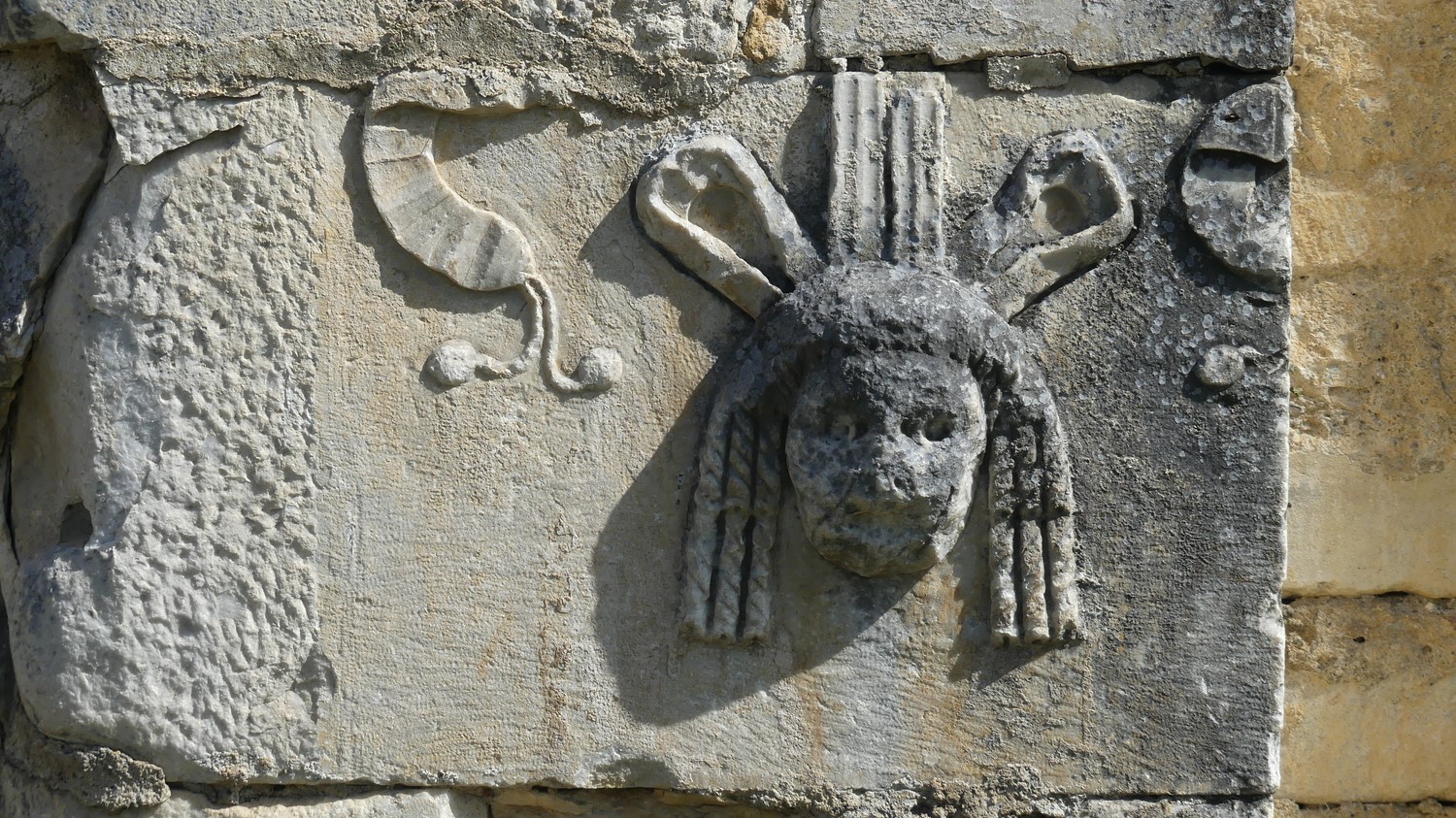 ont servi à sa construction et l'on trouve çà et là des bas-reliefs,