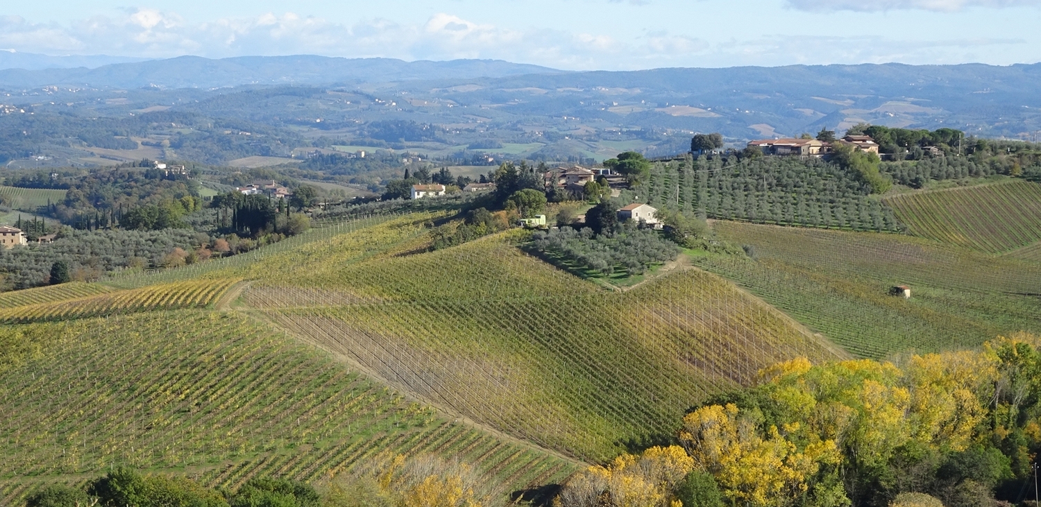 d'oliviers ou de vignes. Les cyprès bordent les propriétés et les tours