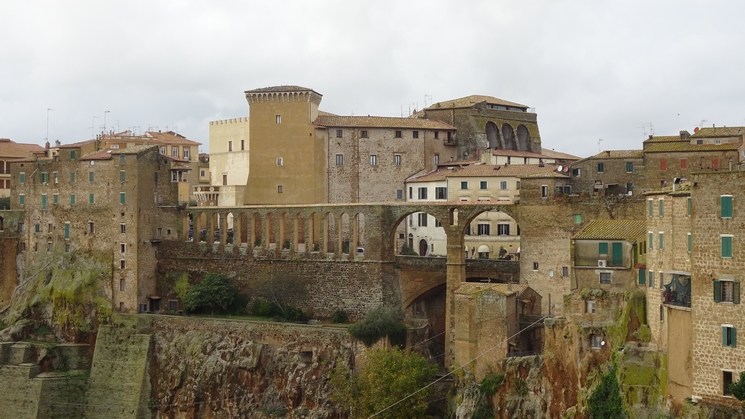 très calme face à ce village de PITIGLIANO, perché sur la falaise.