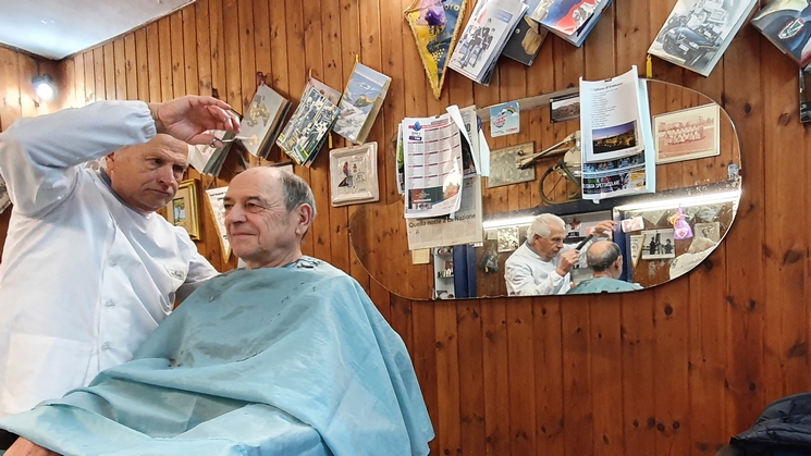 coiffeur. C'est un salon qui est resté figé année 60. Le fauteuil est