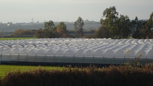 recouvertes d'un film (protection contre la grêle ? contre les oiseaux