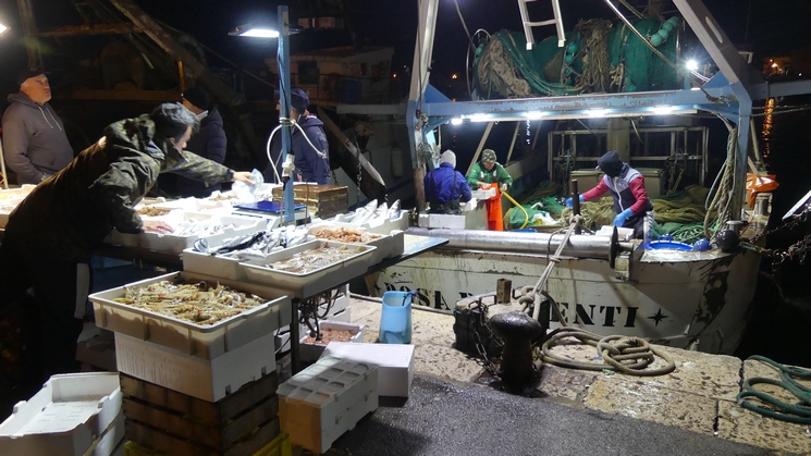 pêcheurs rentrent et vendent le produit de leur pêche. On retourne au