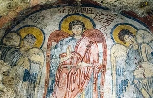 intérieur de 86 marches creusé dans le roc descend jusqu'à l'église