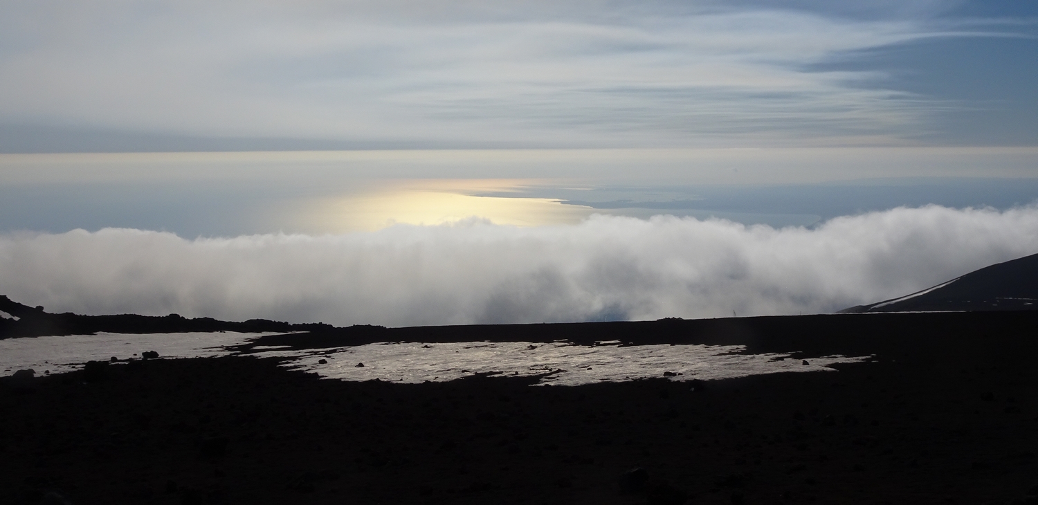 change en cours de matinée et les nuages arrivent sur le volcan. Alors