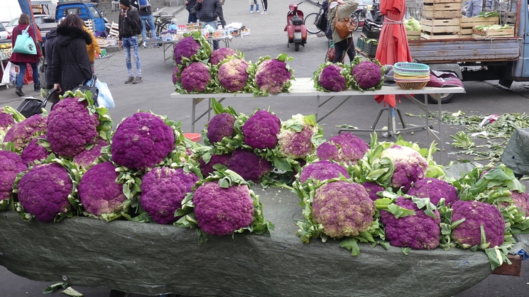 beaucoup de rues et les beaux fruits et légumes proposés au marché.