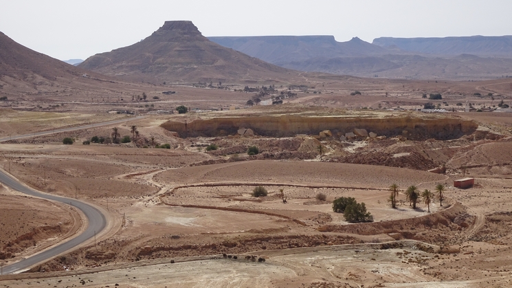 La route vers Ksar Ghilane est excellente et toute droite. Petit à