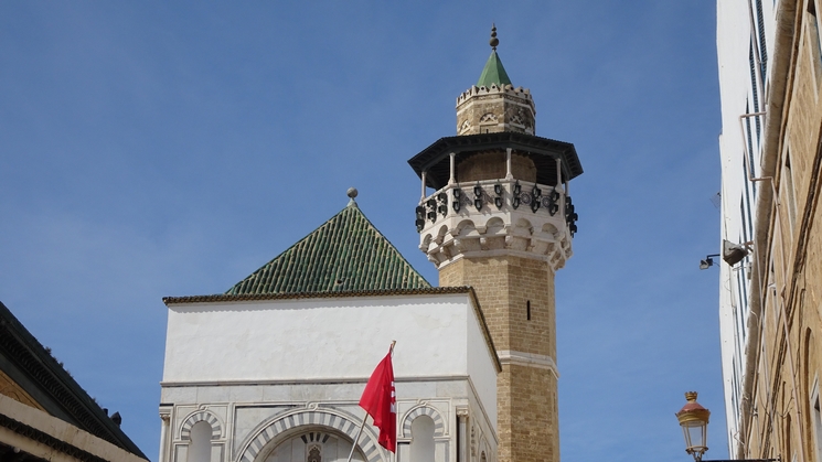 mosquée Zitouna et la ville.La mosquée arabe a un minaret carré et la