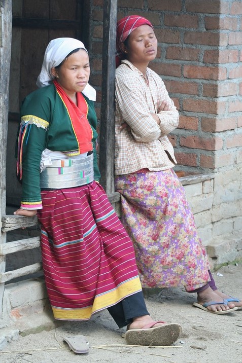 femme PALAUNG, cerceaux en rotin,