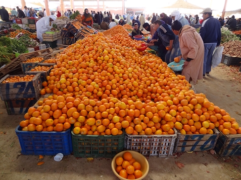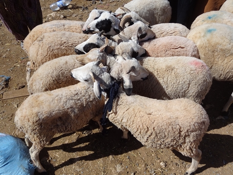 du samedi à Guelmin : chameaux, moutons, chèvres et tomates, haricots,
