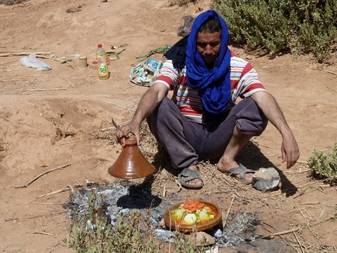 moindre ombre. Mustafa nous prépare un tajine. Il a tout apporté sur le