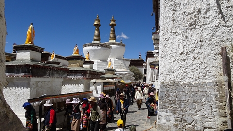 Tashilungpo. Il est loin de l'hôtel et de son parking et nous profitons