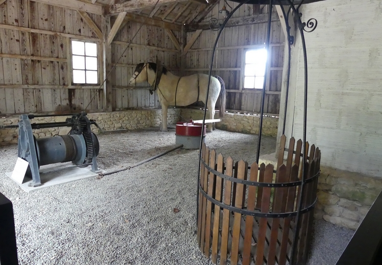 c'est un cheval qui par un système de "noria" permettait à la nacelle
