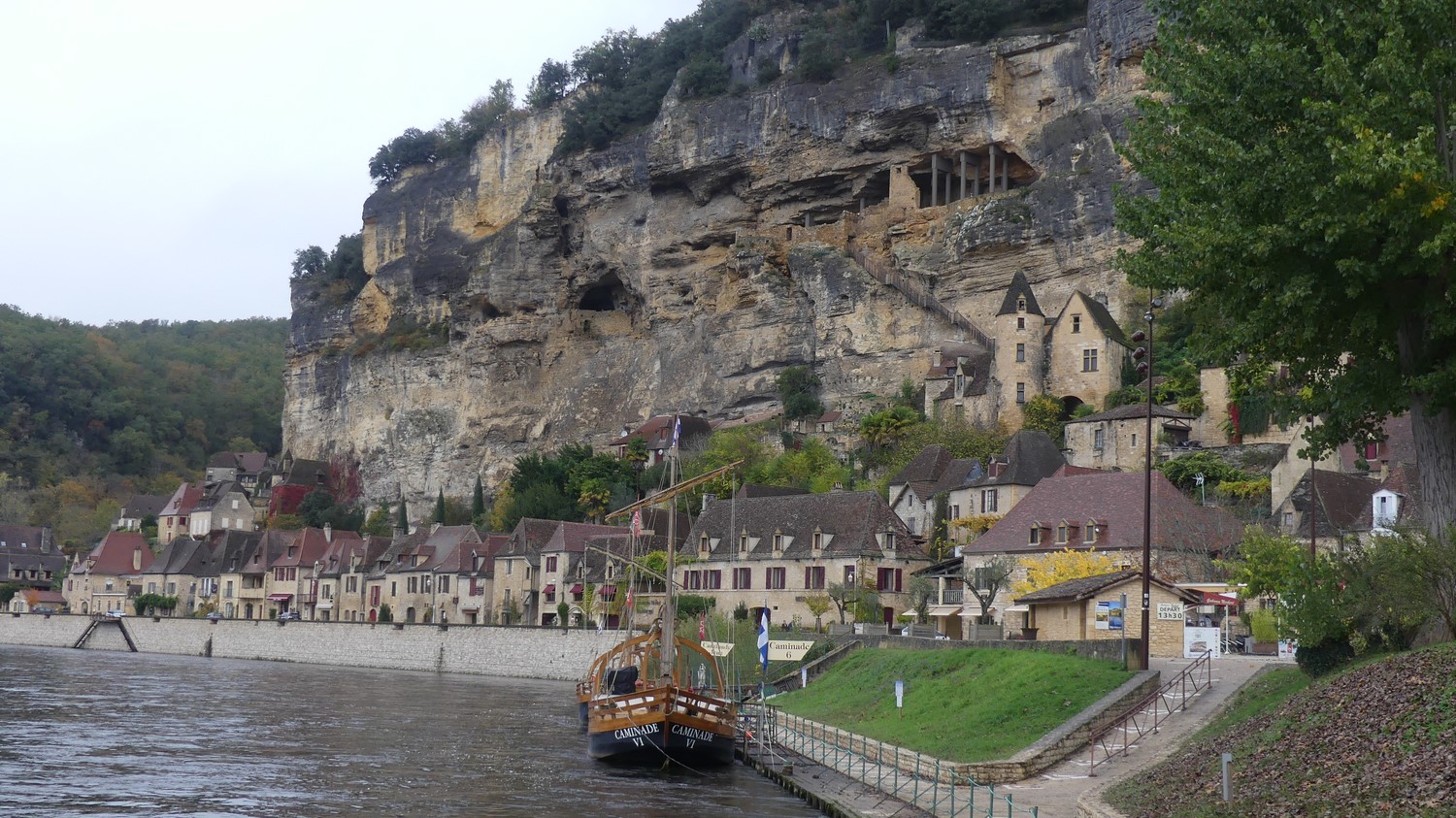 La Roque-Gageac, nous visitons la ville. Elle est bâtie sous la falaise et un sentier très raide monte jusqu'au sommet.