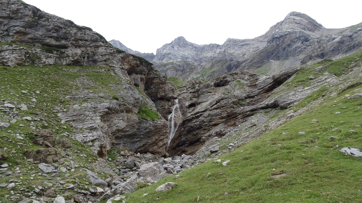 coule une belle cascade. Quelques marmottes signalent notre arrivée et