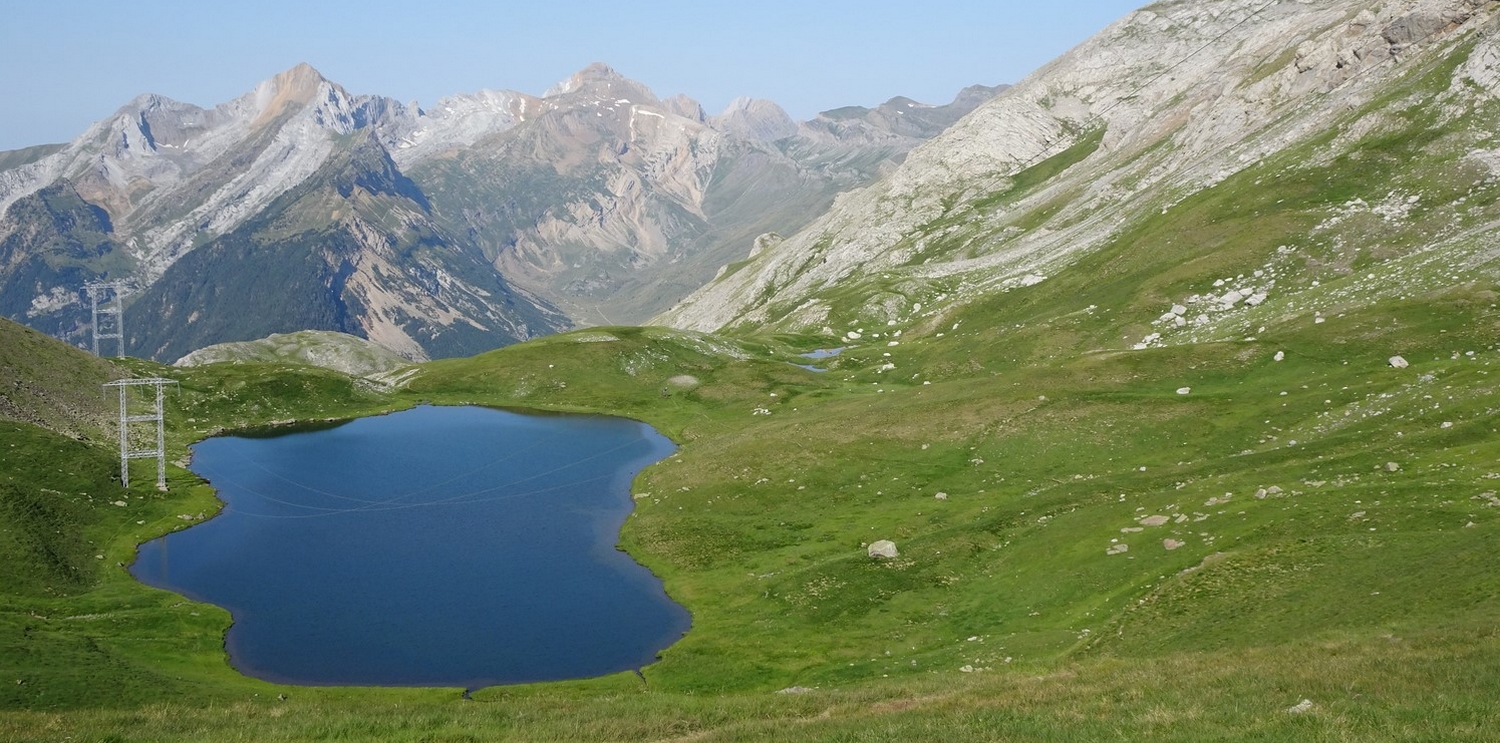 lac de Sautaro qui est côté espagnol et flanqué de pylônes très moches, belle grimpette par un sentier escarpé.
