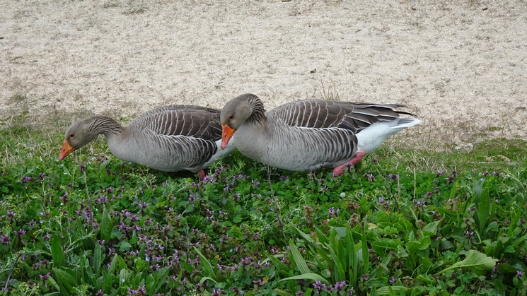 Les oies profitent de la marée basse pour chercher de la nourriture