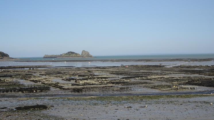 D'immenses parcs à huîtres s'étirent à perte de vue.