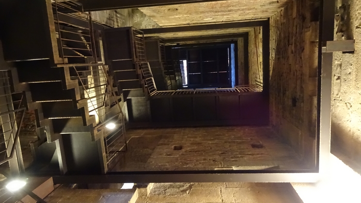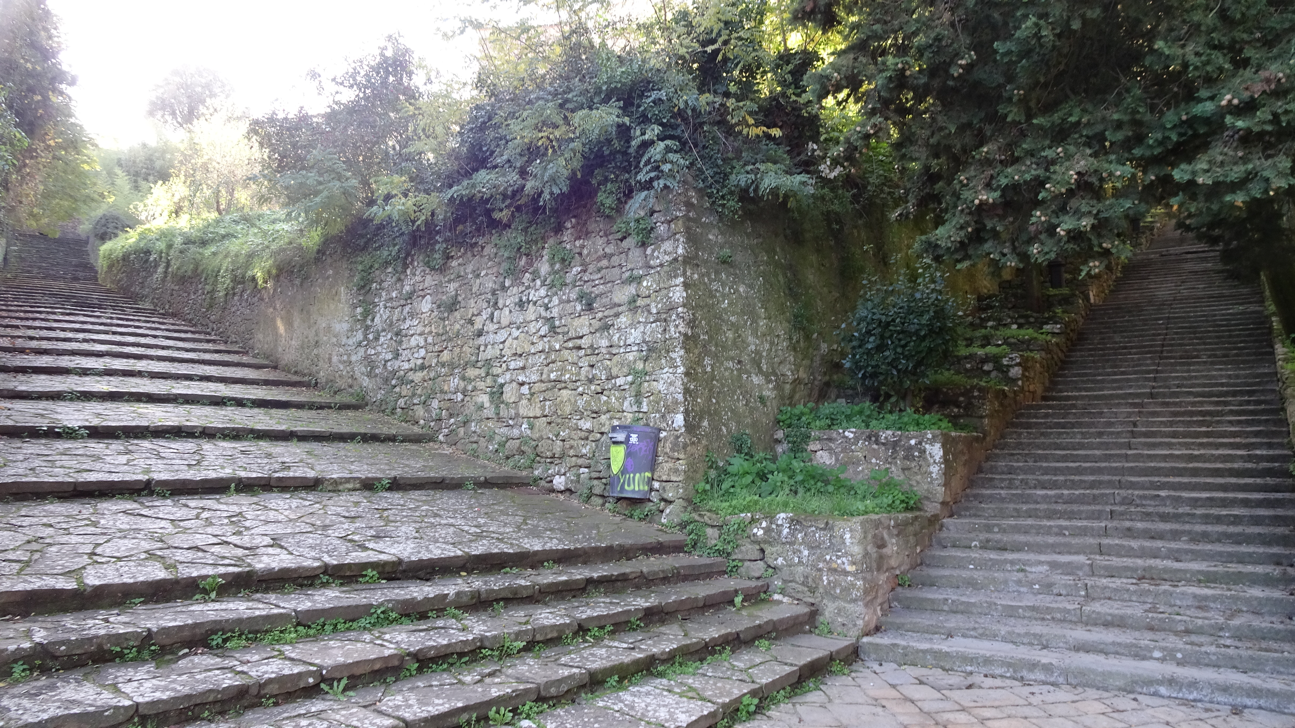 On arrive du parking par une fontaine et le choix de l'escalier pour