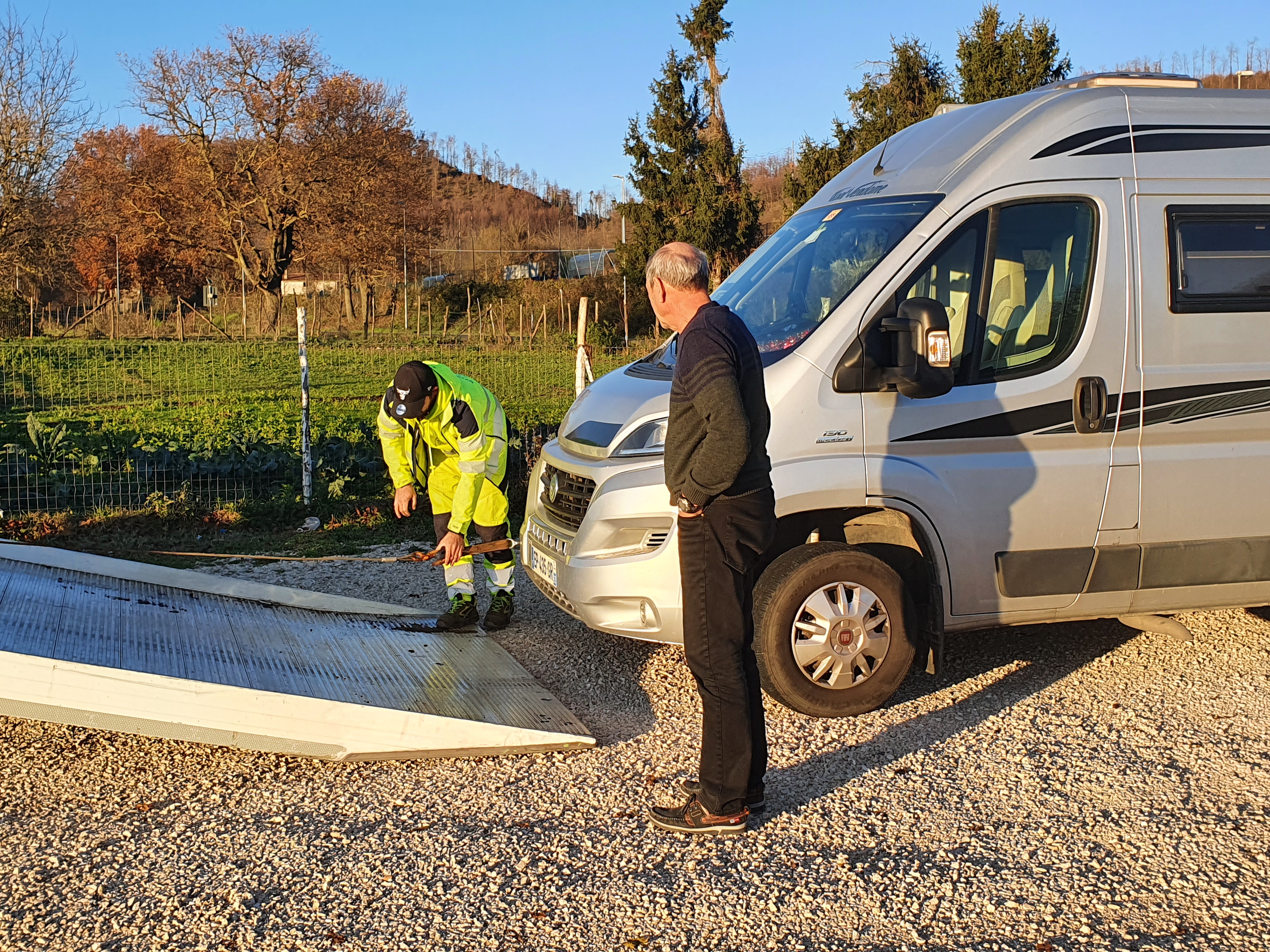 trouvé un garage à 8 km de là, à SAN CESAREO. Il nous a reçus à 17