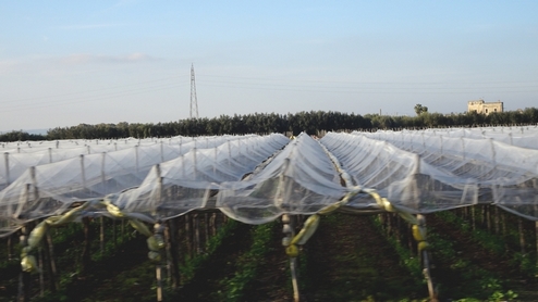 recouvertes d'un film (protection contre la grêle ? contre les oiseaux