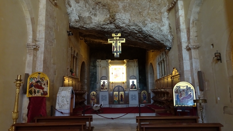 intérieur de 86 marches creusé dans le roc descend jusqu'à l'église