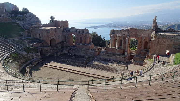 TAORMINE. C'est une jolie petite vill perchée sur un gros rocher. Le