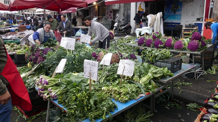 avons remarqué de nombreux étalages de fruits et légumes. Et en fait