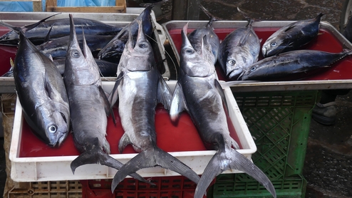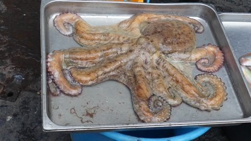 Heureusement le marché aux poissons est très animé et les poissonniers