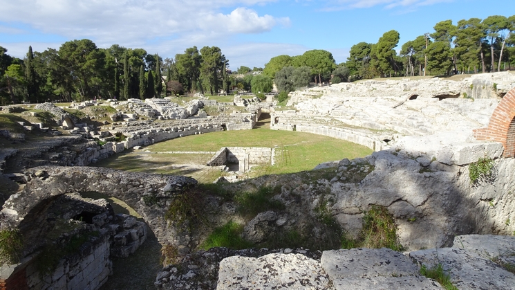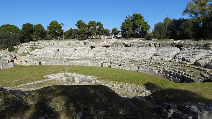 site principal est le théâtre antique creusé dans ce rocher.