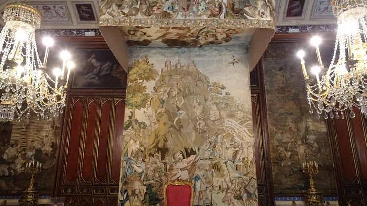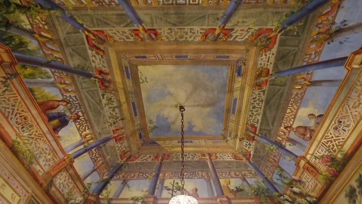 tapisseries brodées de fil d’or, ses fresques en trompe-l’oeil, etc...