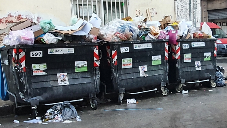 existe un grand contraste entre les bennes à ordure débordantes dans