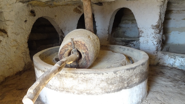 découvrir un moulin à huile. Des scourtins - sorte de tapis ronds en