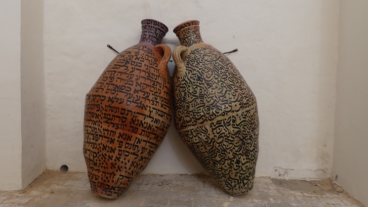 On avance assez loin et dans une cour on remarque des amphores. Un peu