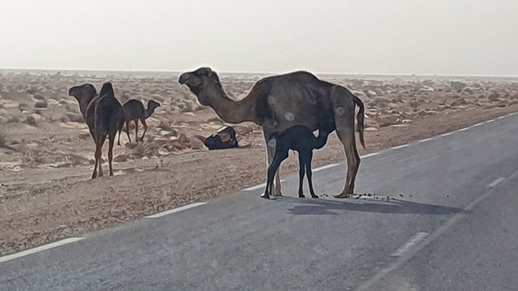 La route vers Ksar Ghilane est excellente et toute droite. Petit à